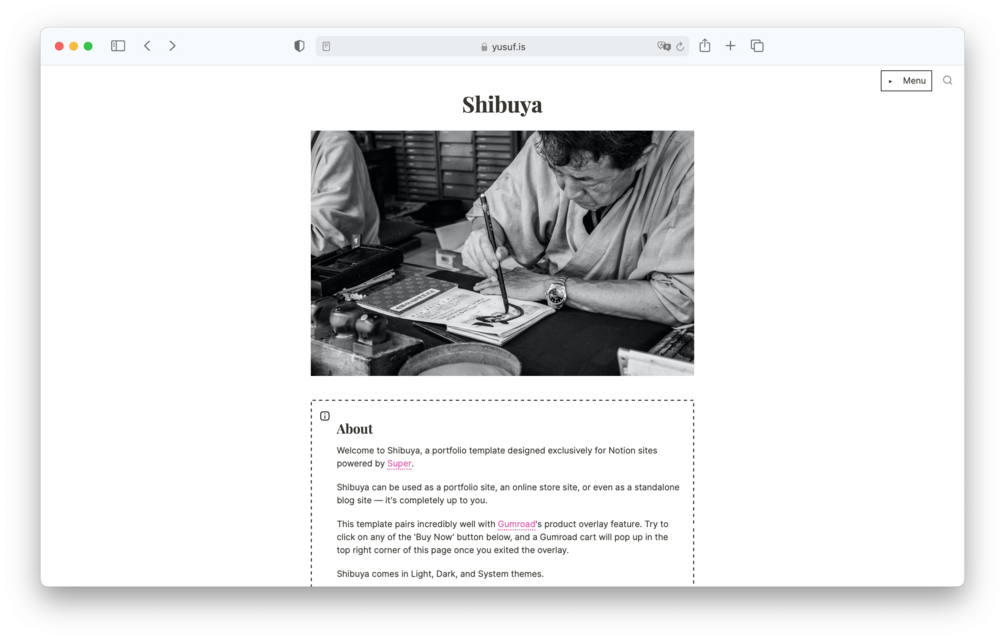 A website theme and template designed exclusively for Notion websites powered by Super.